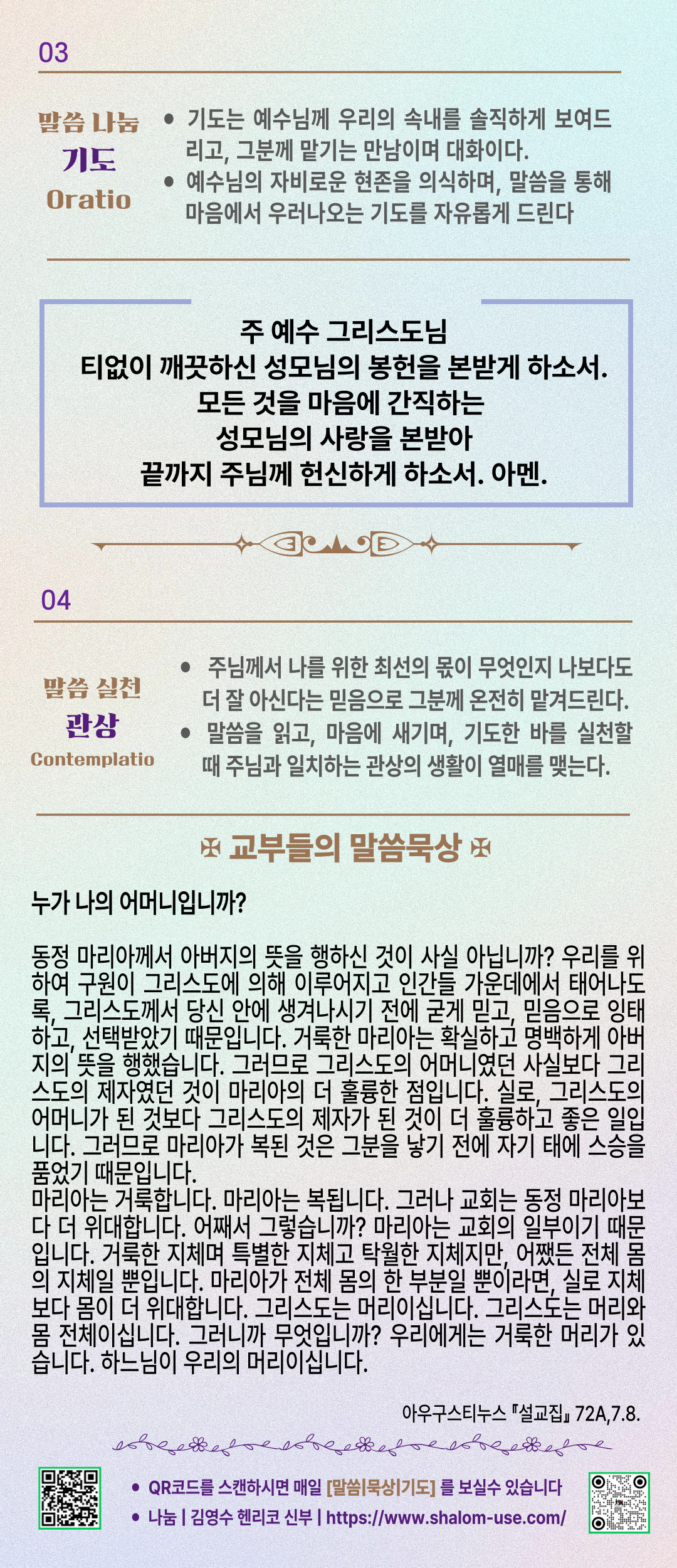 말씀묵상기도 LECTIO DIVINA [258] 20251121 복되신 동정 마리아 자헌 기념일
