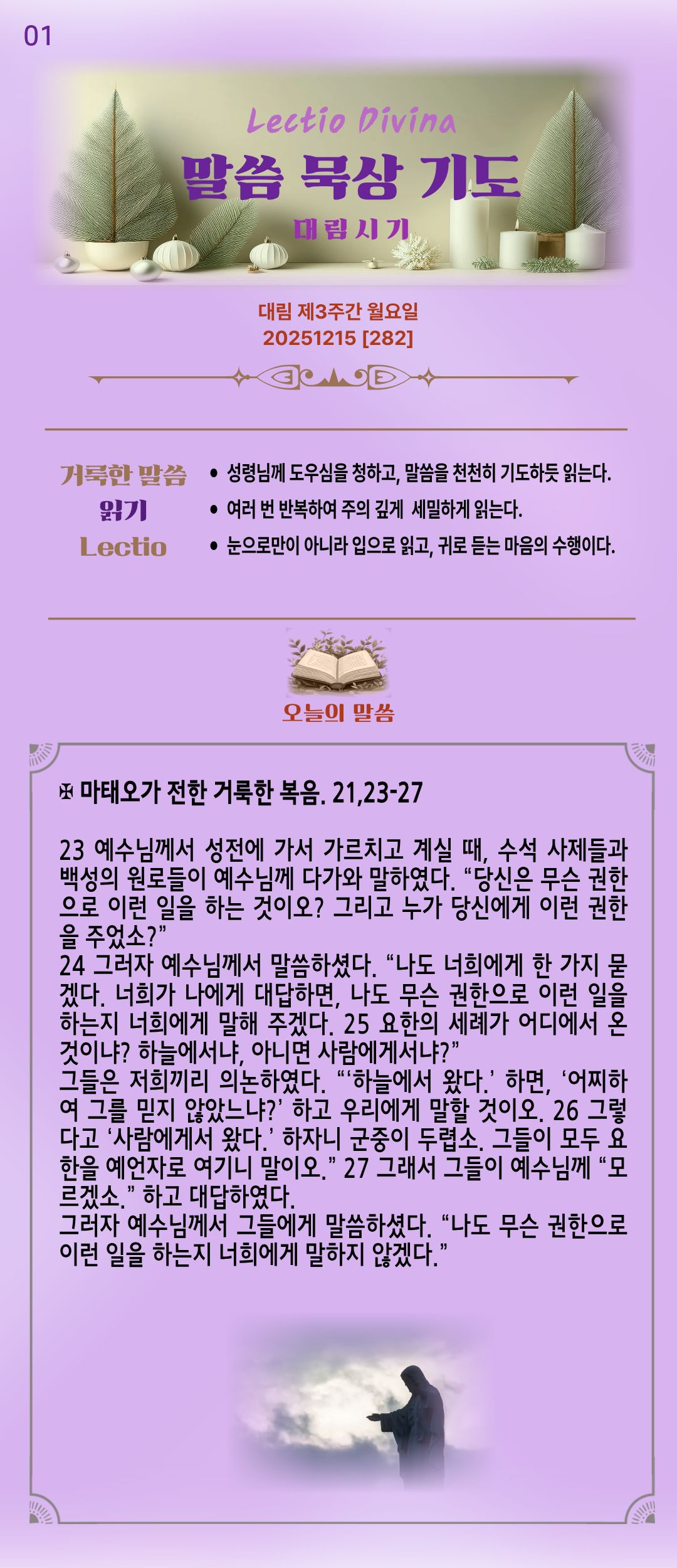 말씀묵상기도 LECTIO DIVINA [282]20251215 대림 제3주간 월요일