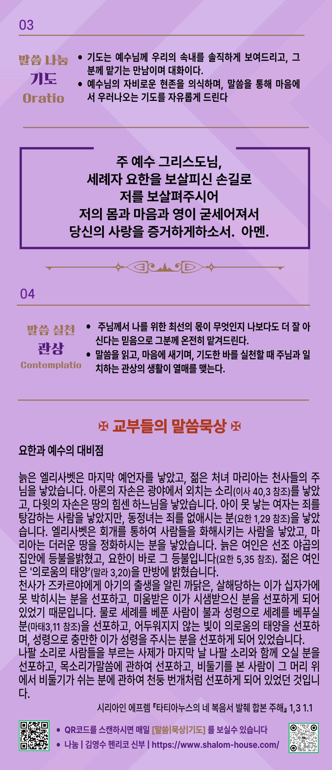 말씀묵상기도 LECTIO DIVINA [290] 20251223 대림 제4주간 화요일