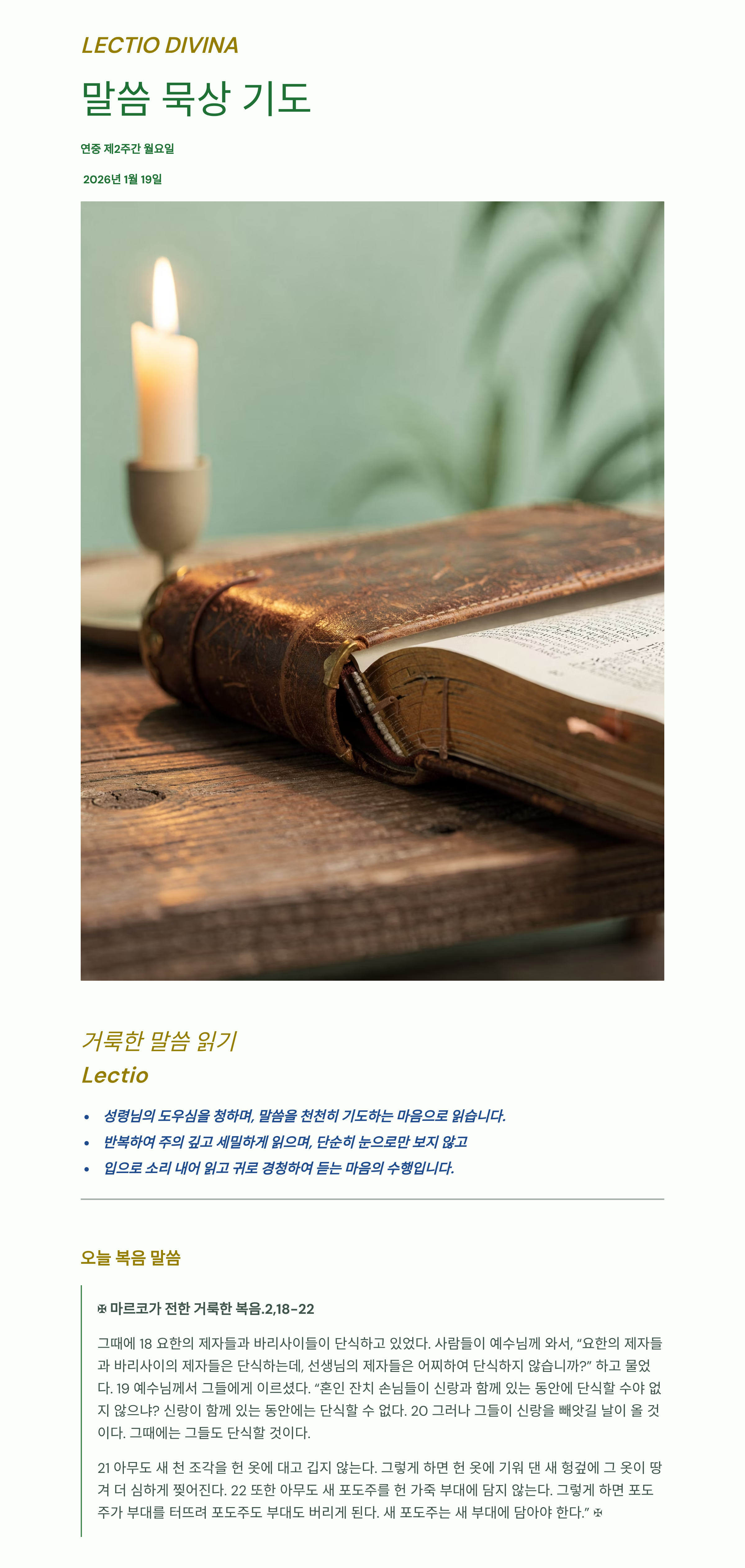 말씀묵상기도 LECTIO DIVINA 20260119 연중 제2주간 월요일