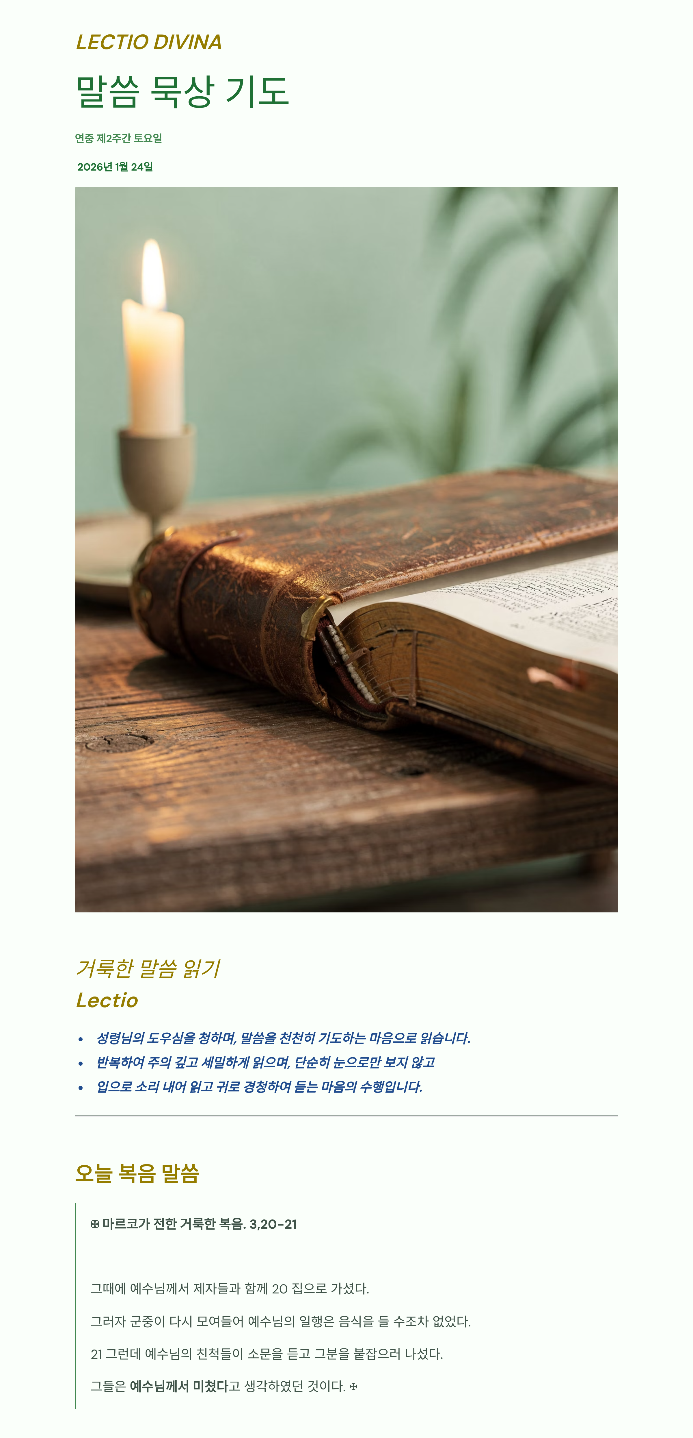 말씀묵상기도 LECTIO DIVINA 20260124 연중 제2주간 토요일 | 성 프란치스코 살레시오 주교학자 기념일