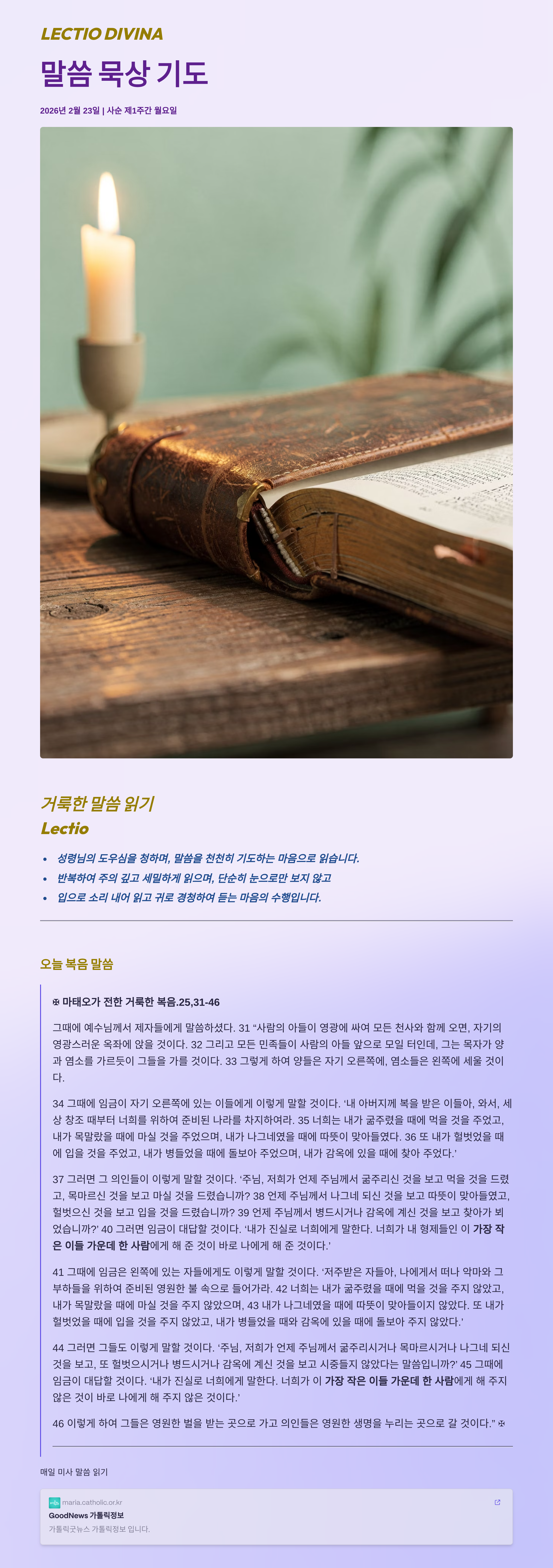말씀묵상기도 LECTIO DIVINA 2026 02 23 사순 제1주간 월요일