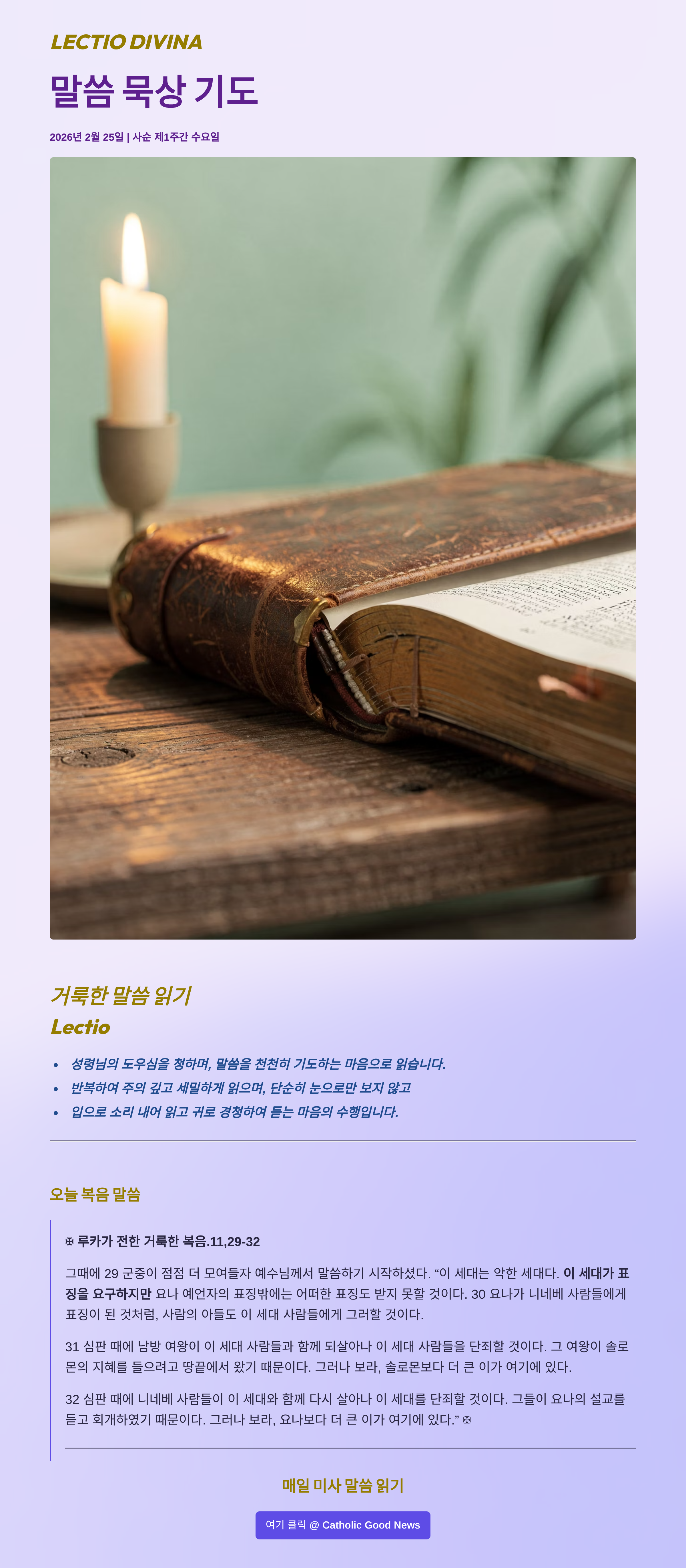 말씀묵상기도 LECTIO DIVINA 2026 02 25 사순 제1주간 수요일
