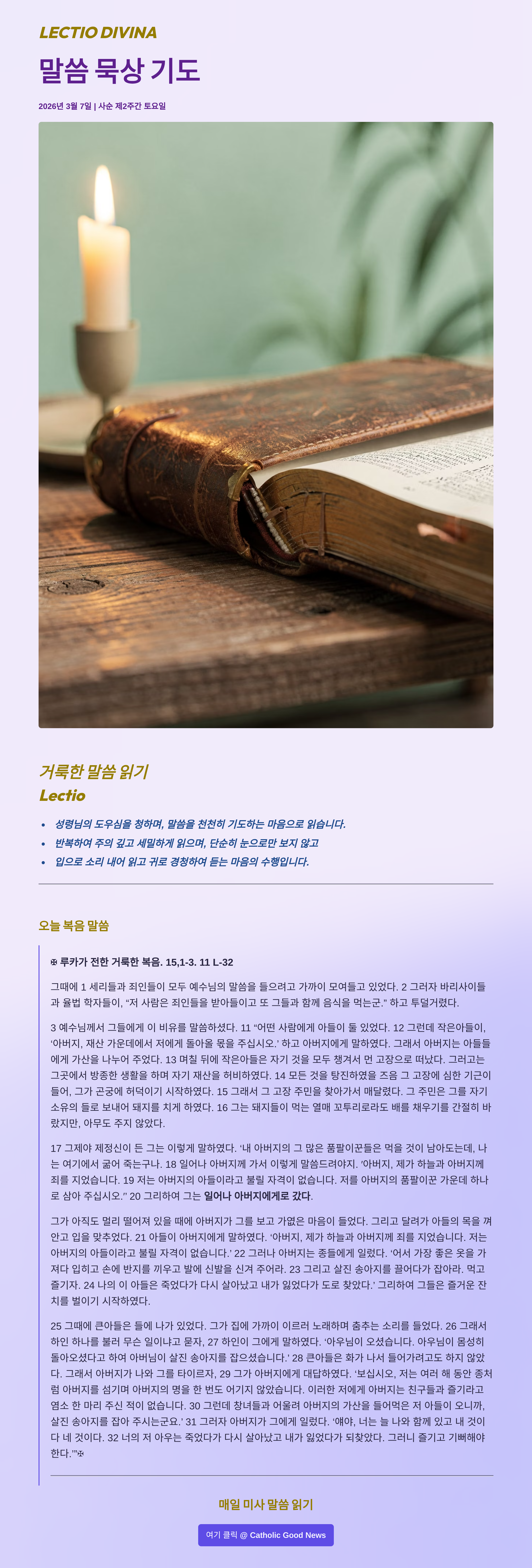 말씀묵상기도 LECTIO DIVINA 2026 0307 사순 제2주간 토요일