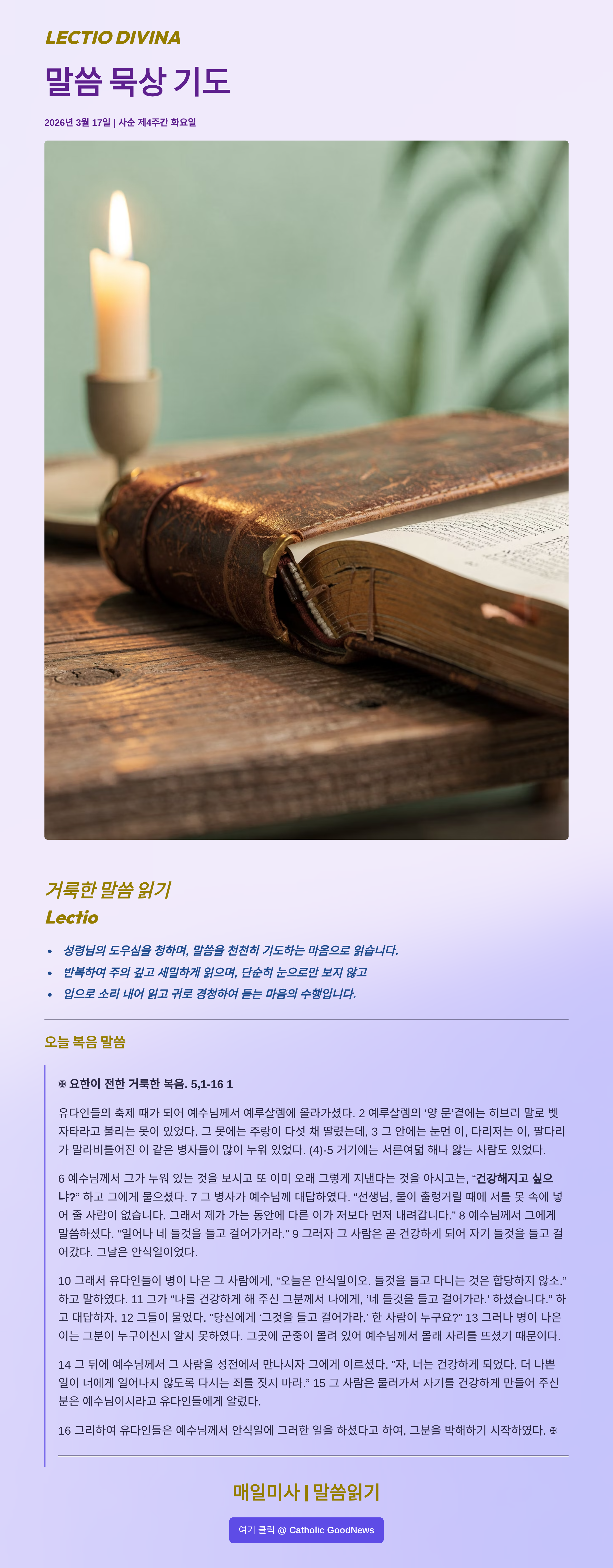 말씀묵상기도 LECTIO DIVINA 2026 03 17 사순 제4주간 화요일