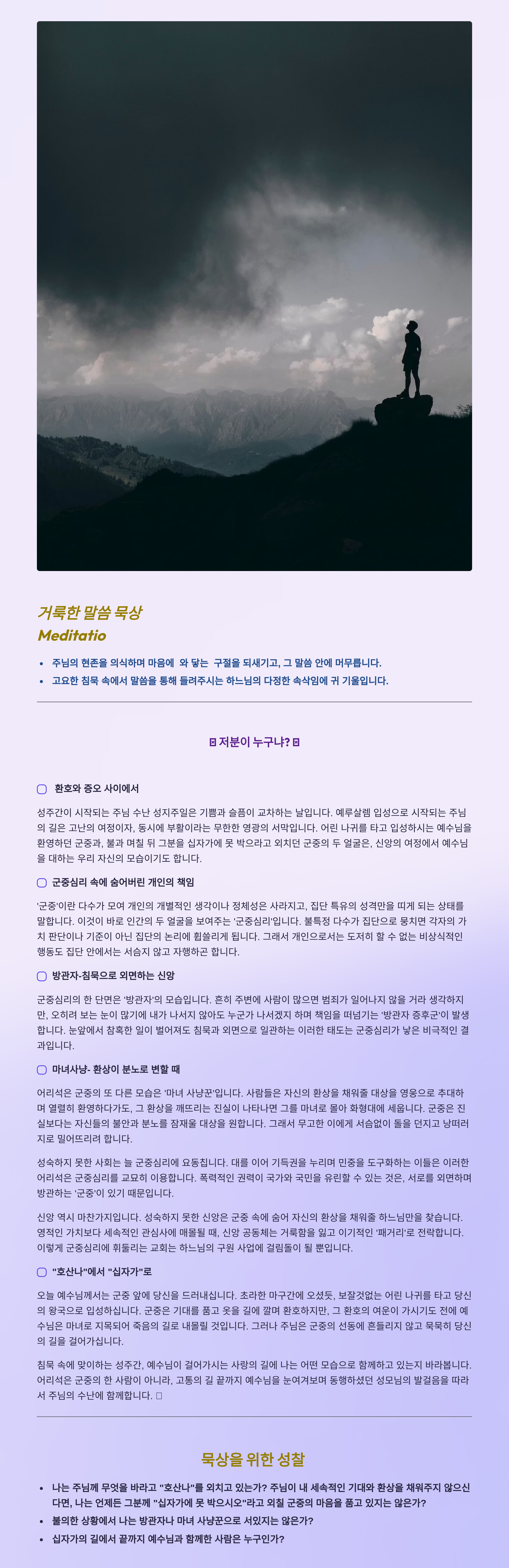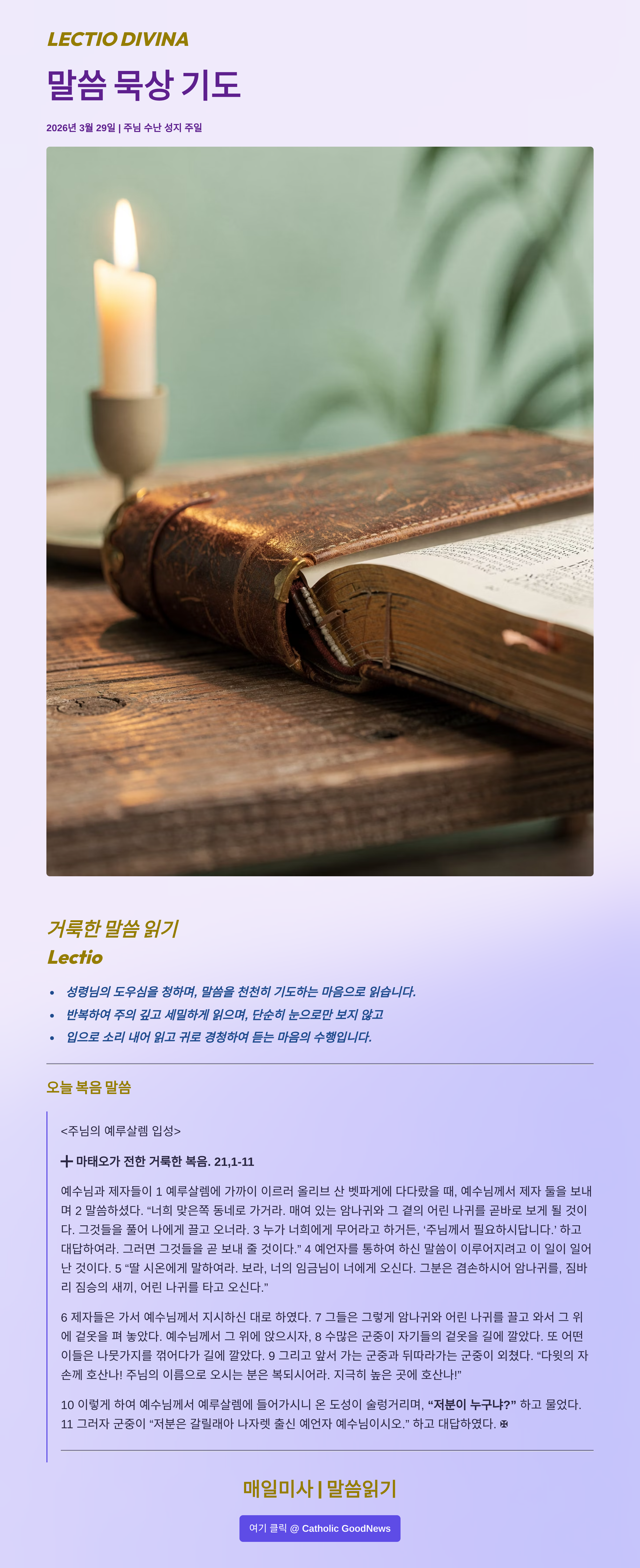 말씀묵상기도 LECTIO DIVINA 2026 03 29 주님 수난 성지 주일