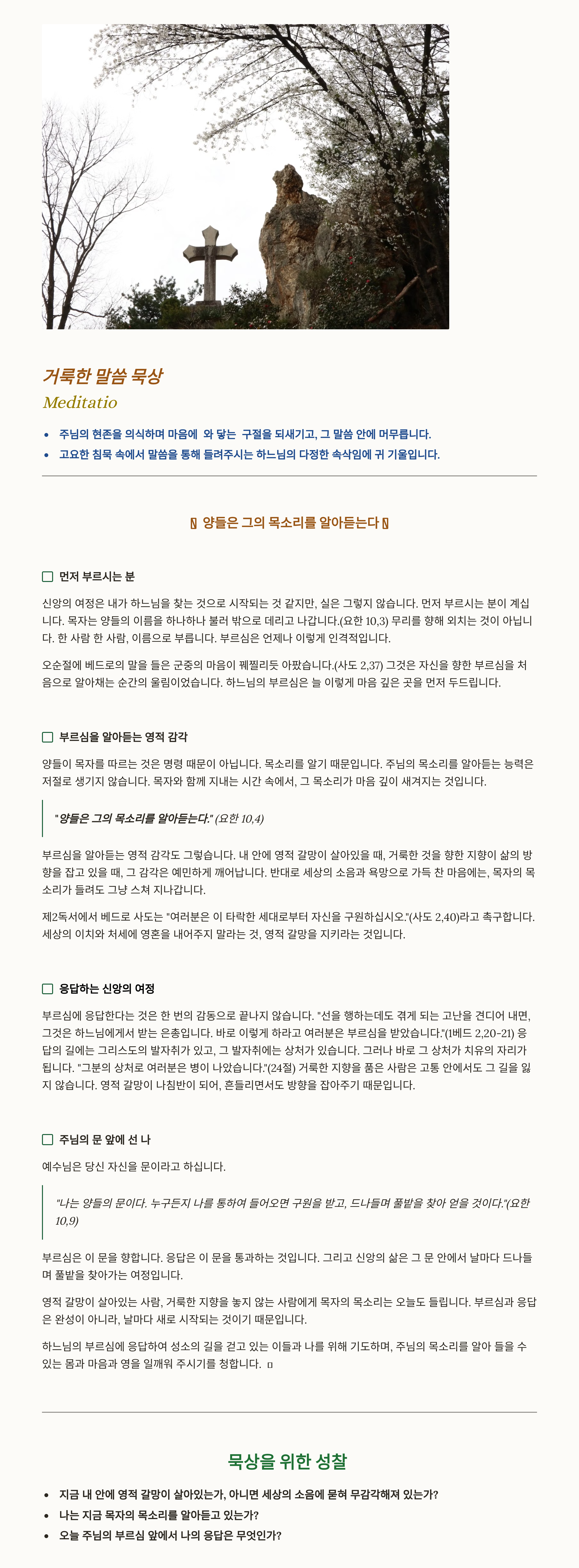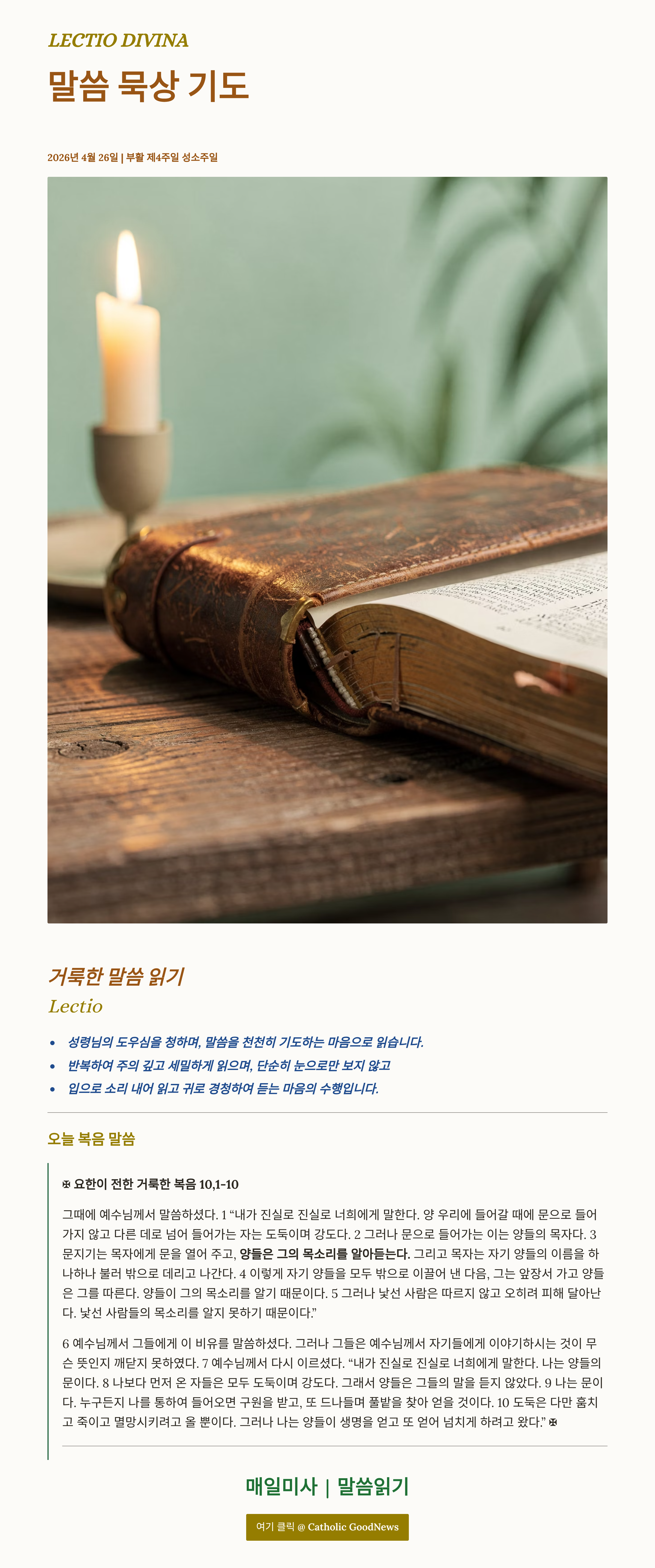 말씀묵상기도 LECTIO DIVINA 20026 04 26 부활 제4주일 성소주일