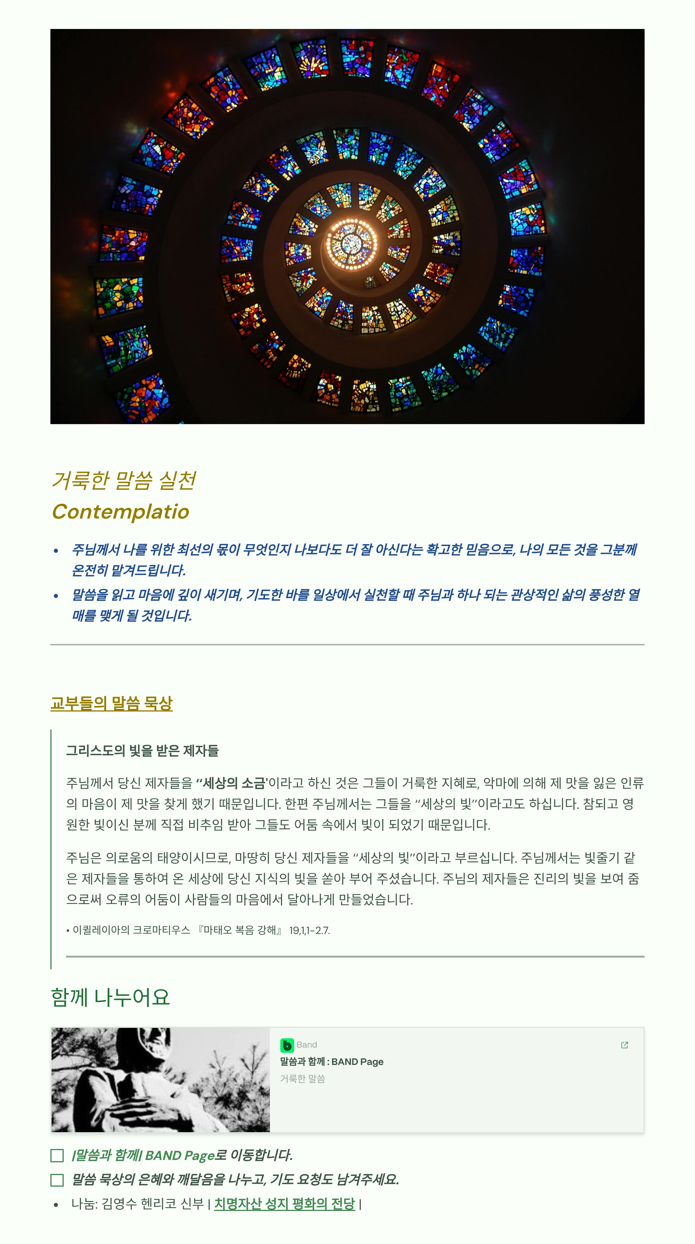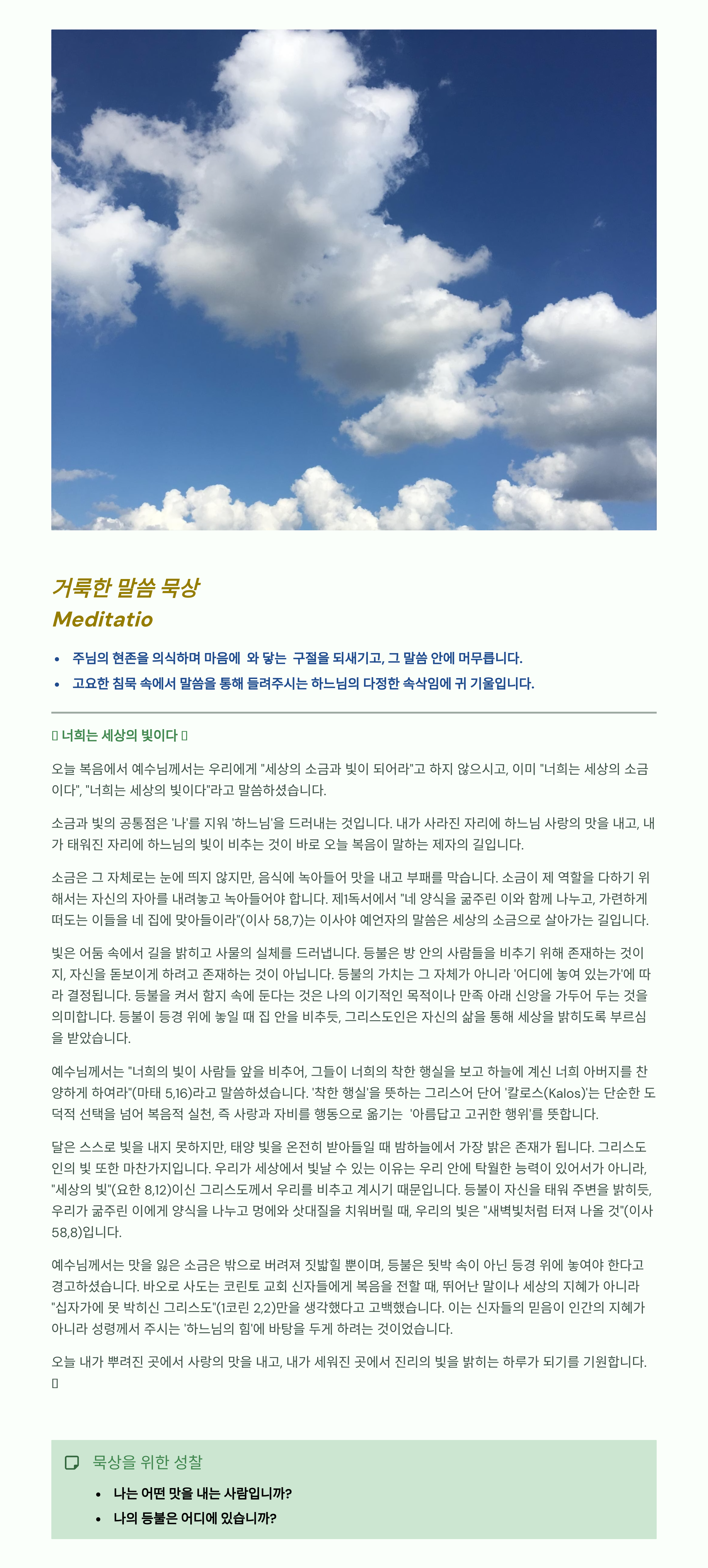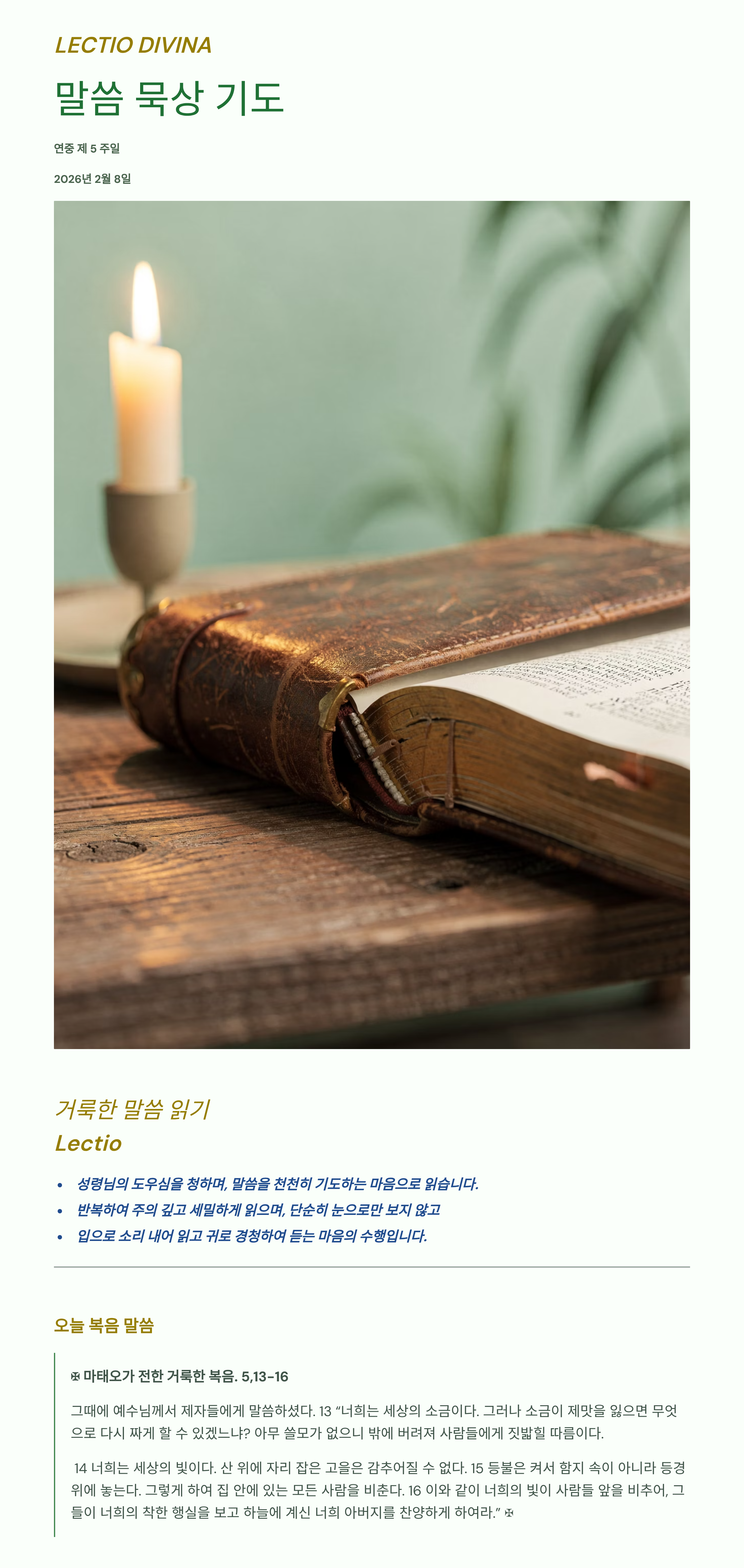 말씀묵상기도 LECTIO DIVINA 20260208 연중 제5주일