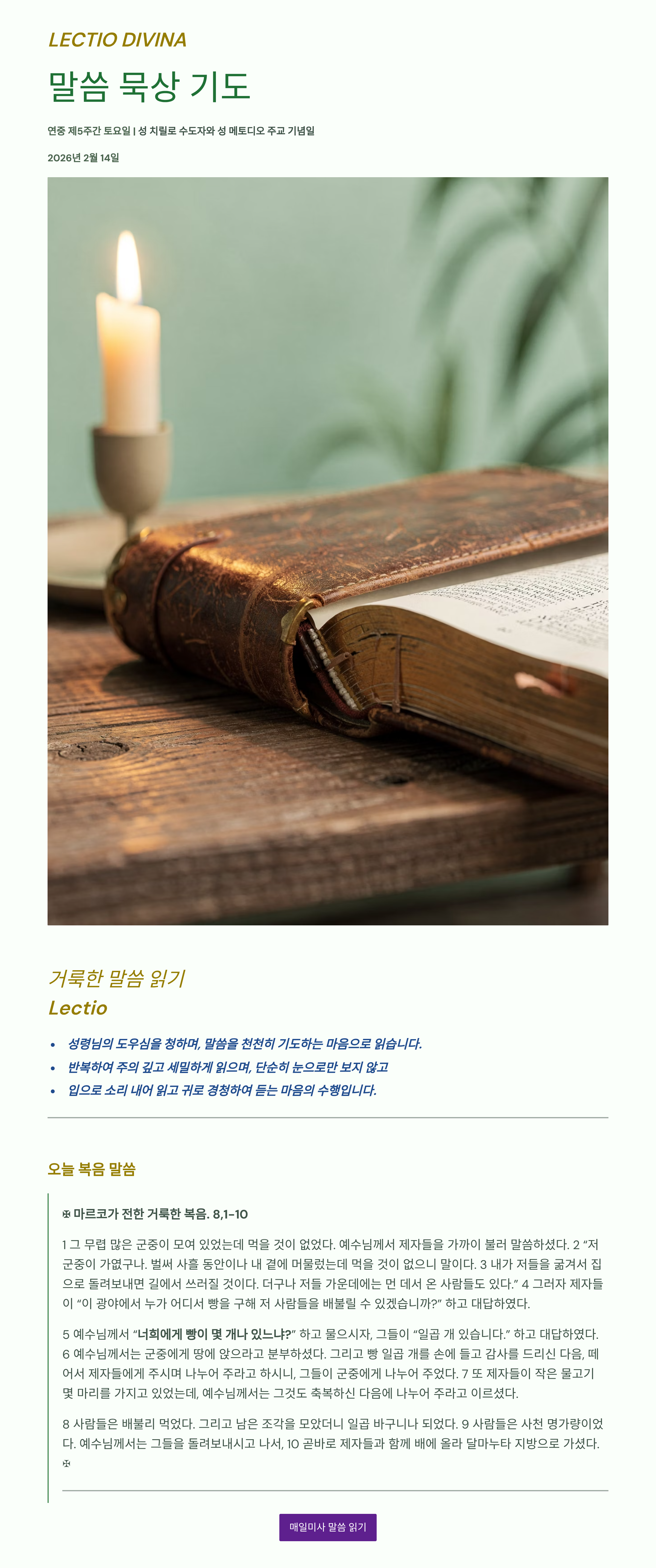 말씀묵상기도 LECTIO DIVINA 2026 0214 성 치릴로 수도자와 성 메토디오 주교 기념일