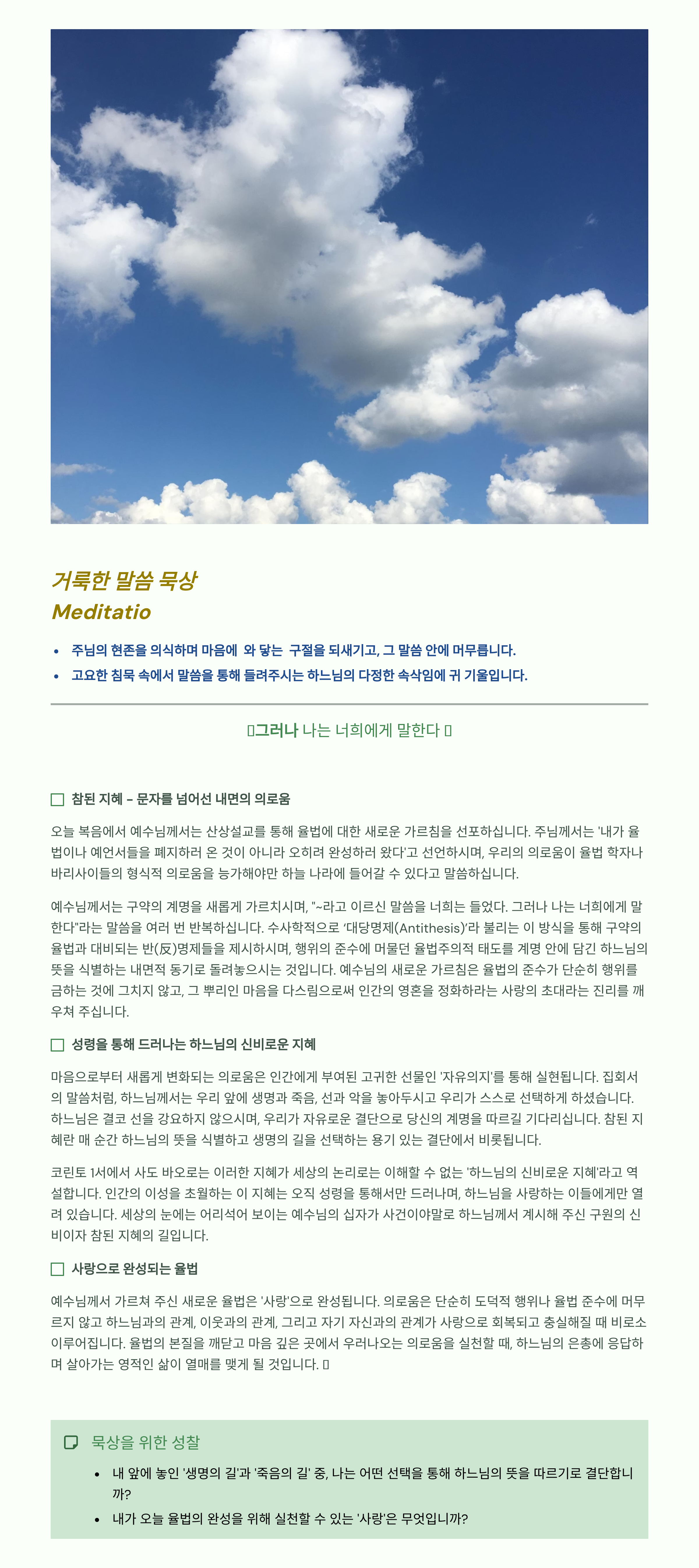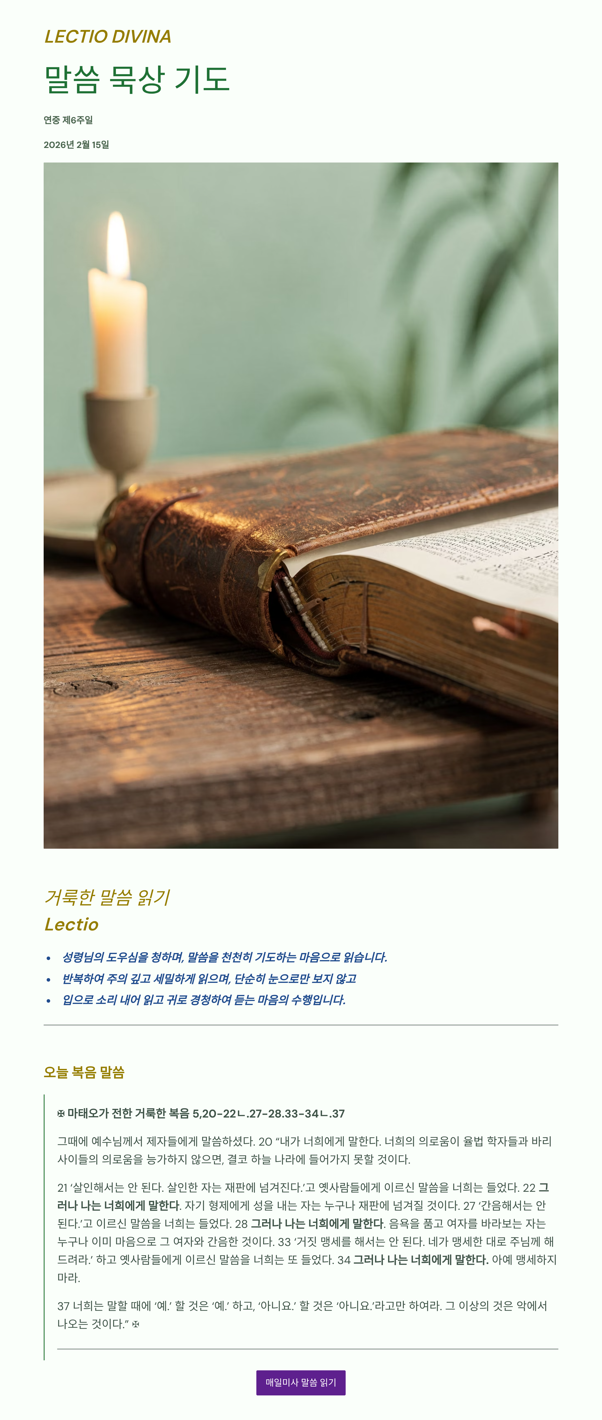 말씀묵상기도 LECTIO DIVINA 2026 02 15 연중 제6주일