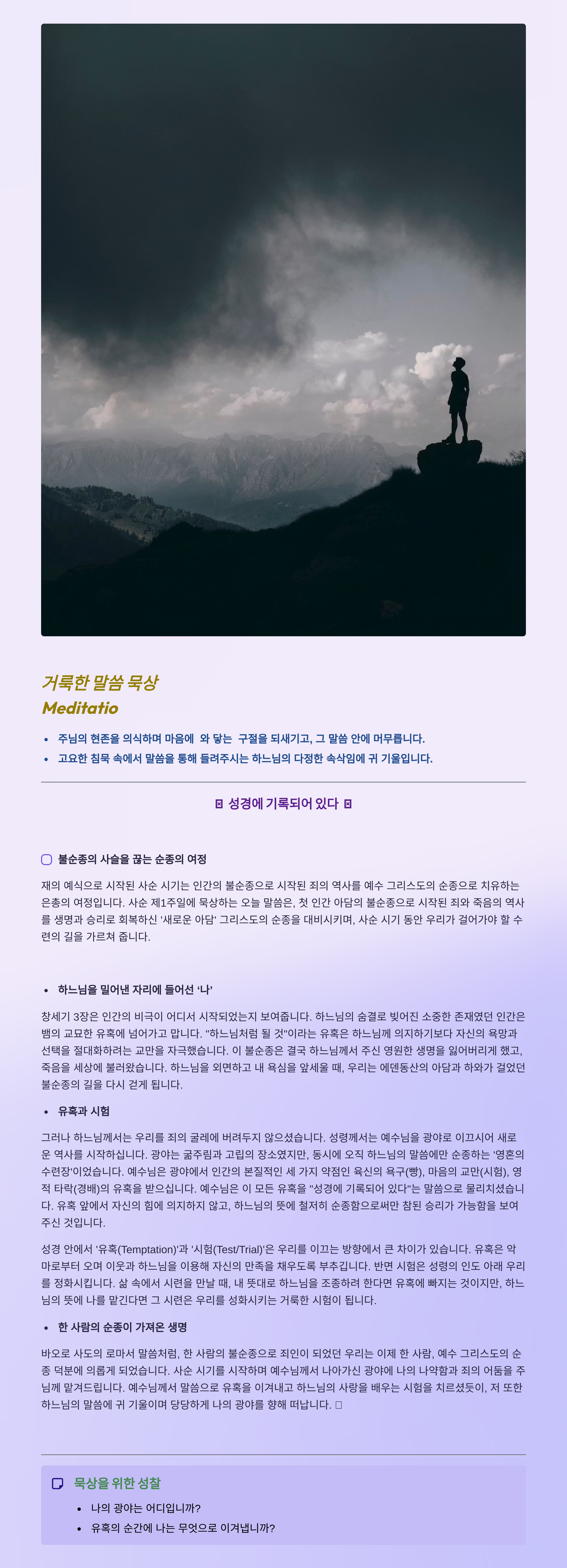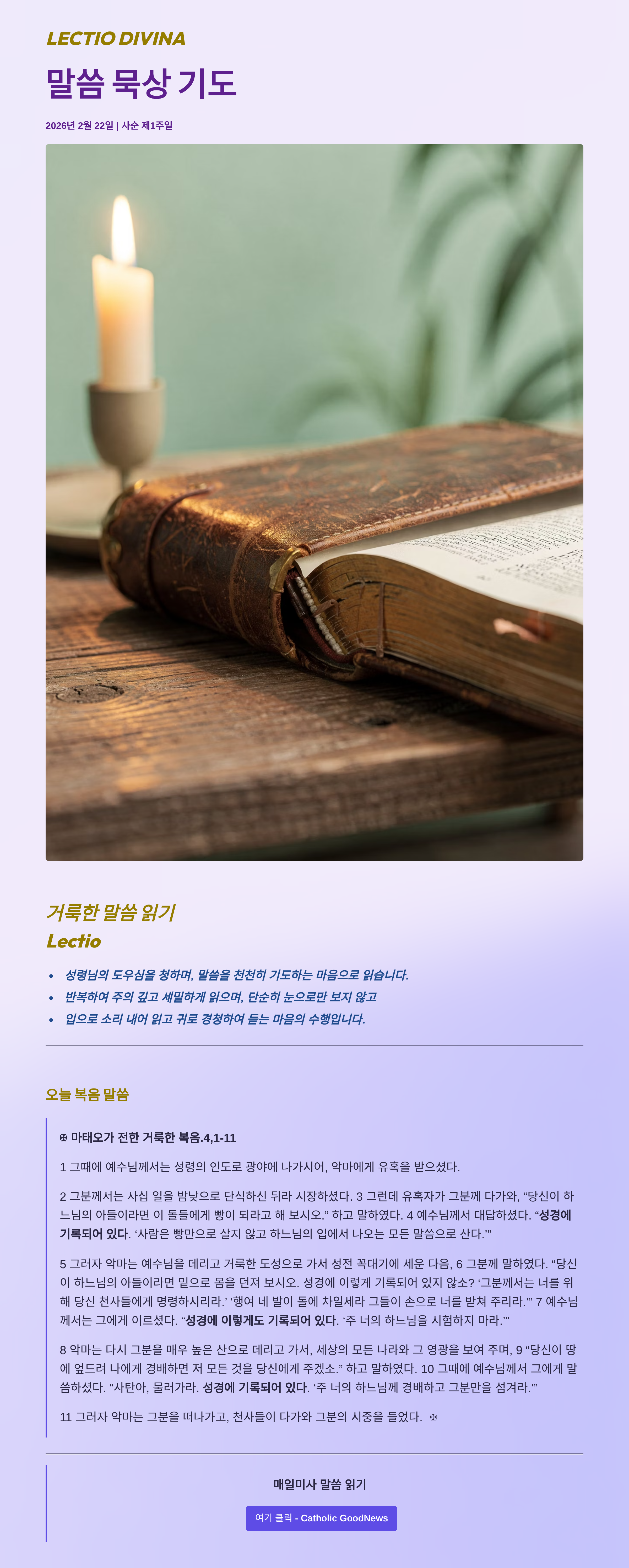 말씀묵상기도 LECTIO DIVINA 2026 02 22 사순 제1주일