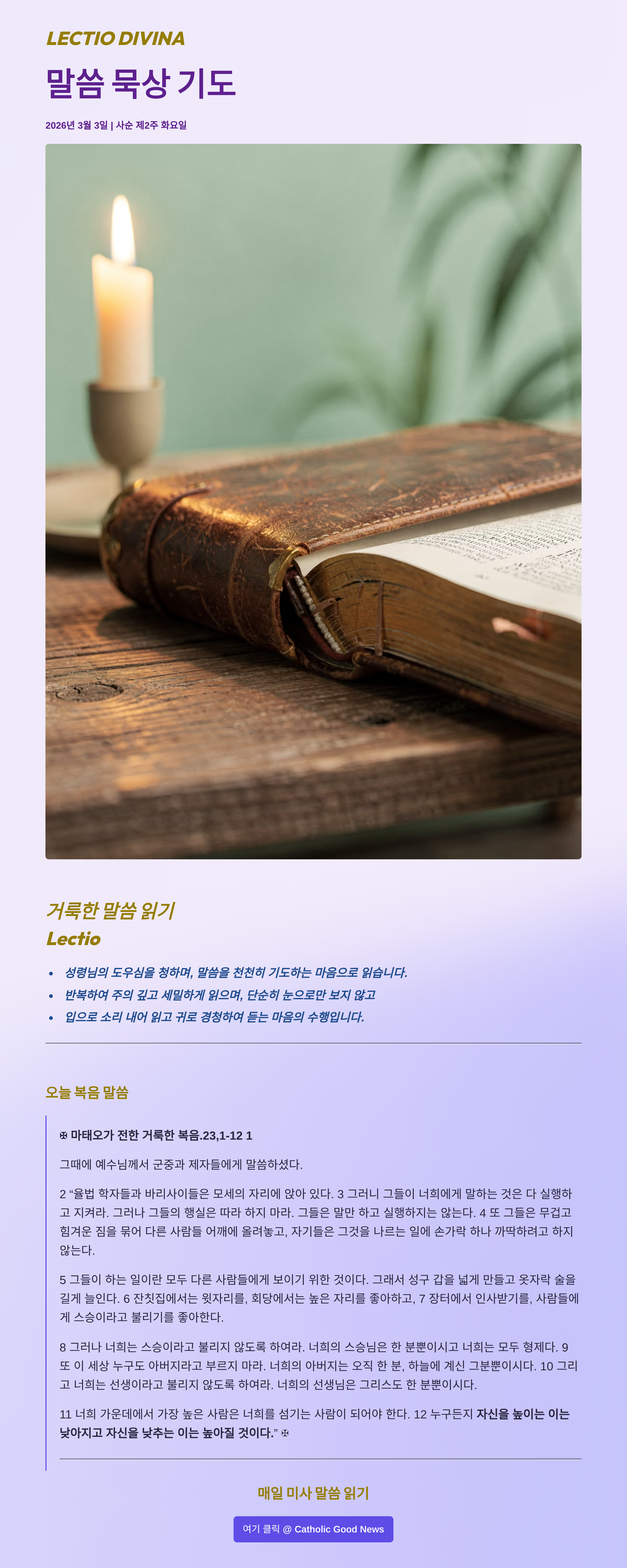 말씀묵상기도 LECTIO DIVINA 2026 03 03 사순 제2주간 화요일