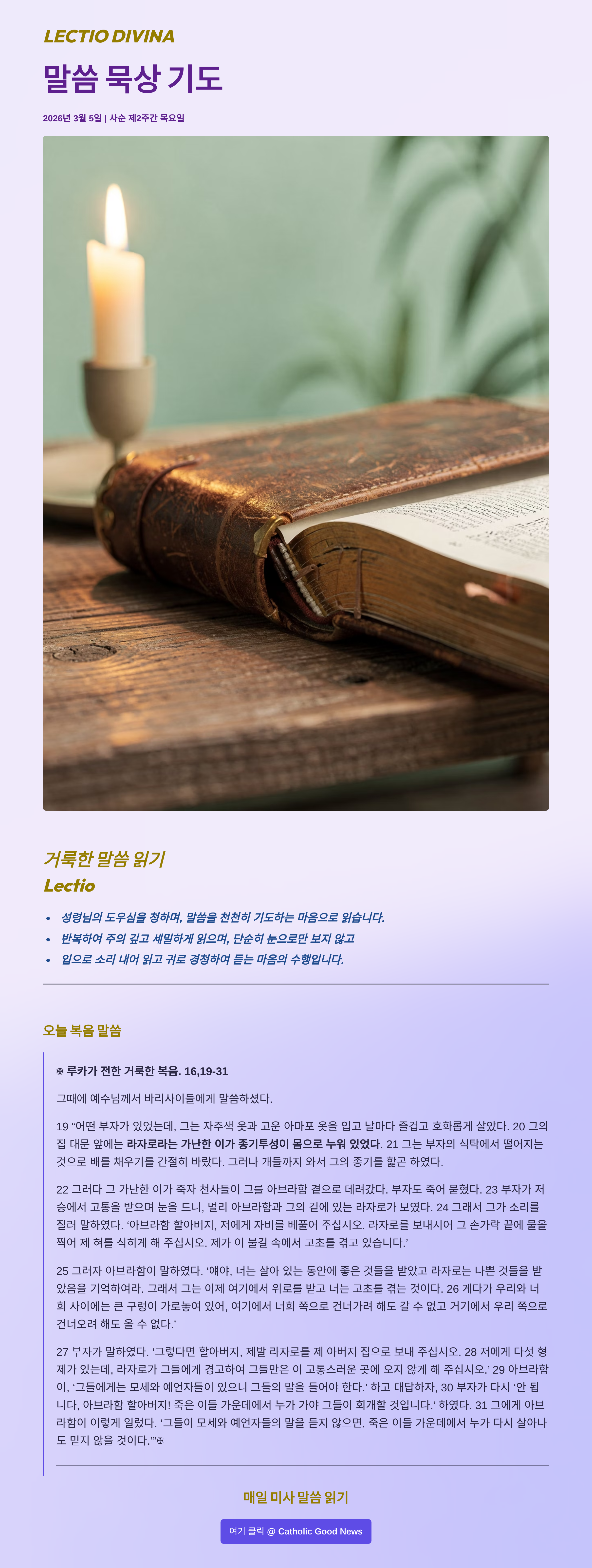 말씀묵상기도 LECTIO DIVINA 2026 03 05 사순 제2주간 목요일