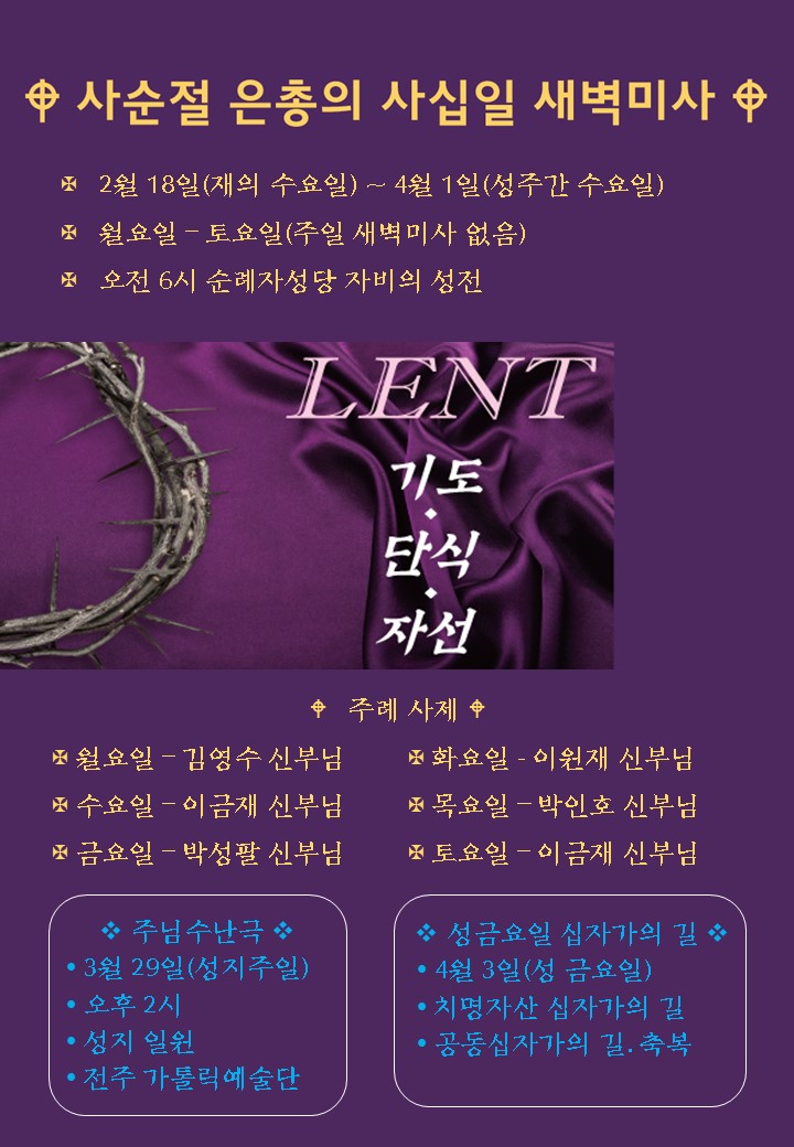 2026년 은총의 사순설 40일 새벽미사