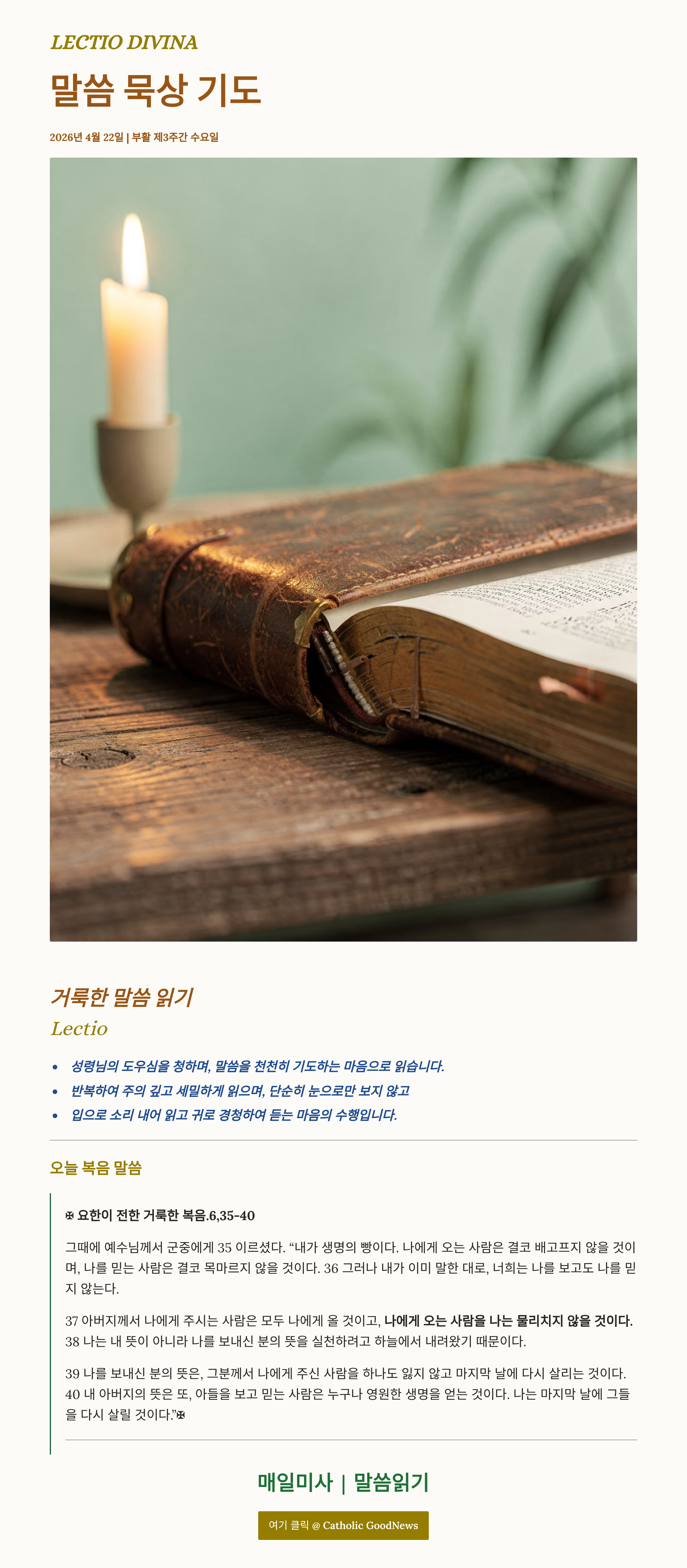 말씀묵상기도 LECTIO DIVINA 2026 04 22. 부활 제3주간 수요일