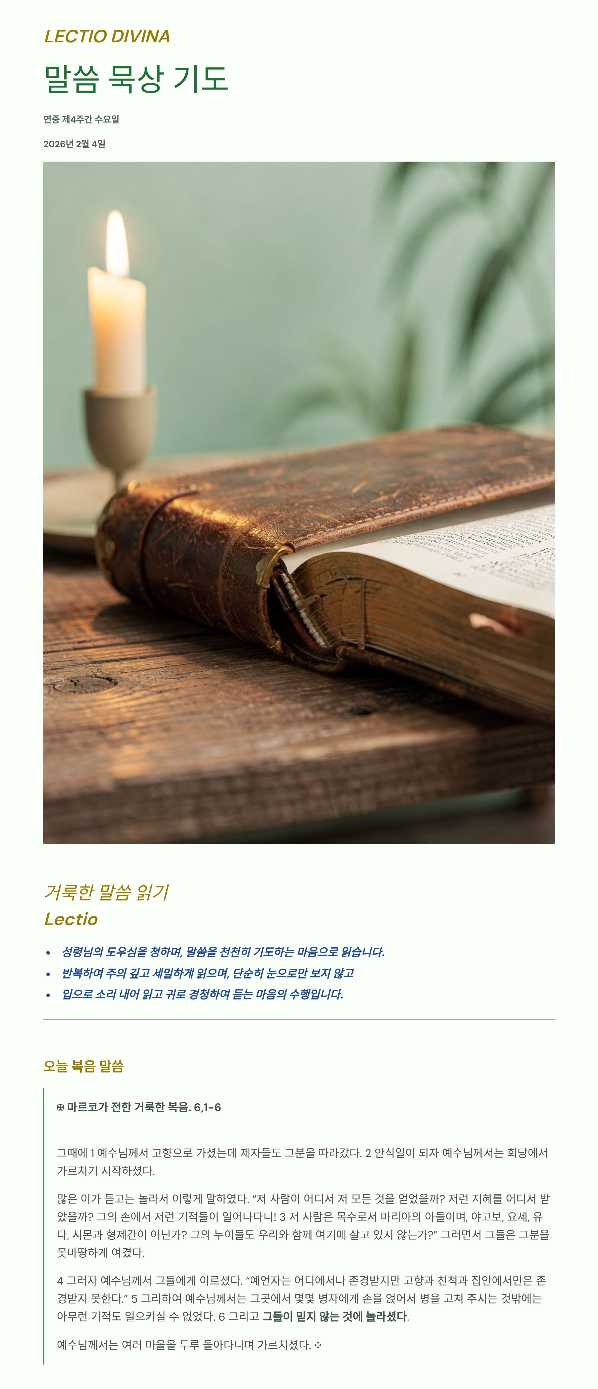 말씀묵상기도 LECTIO DIVINA 2026 02 04 연중 제4주간 수요일