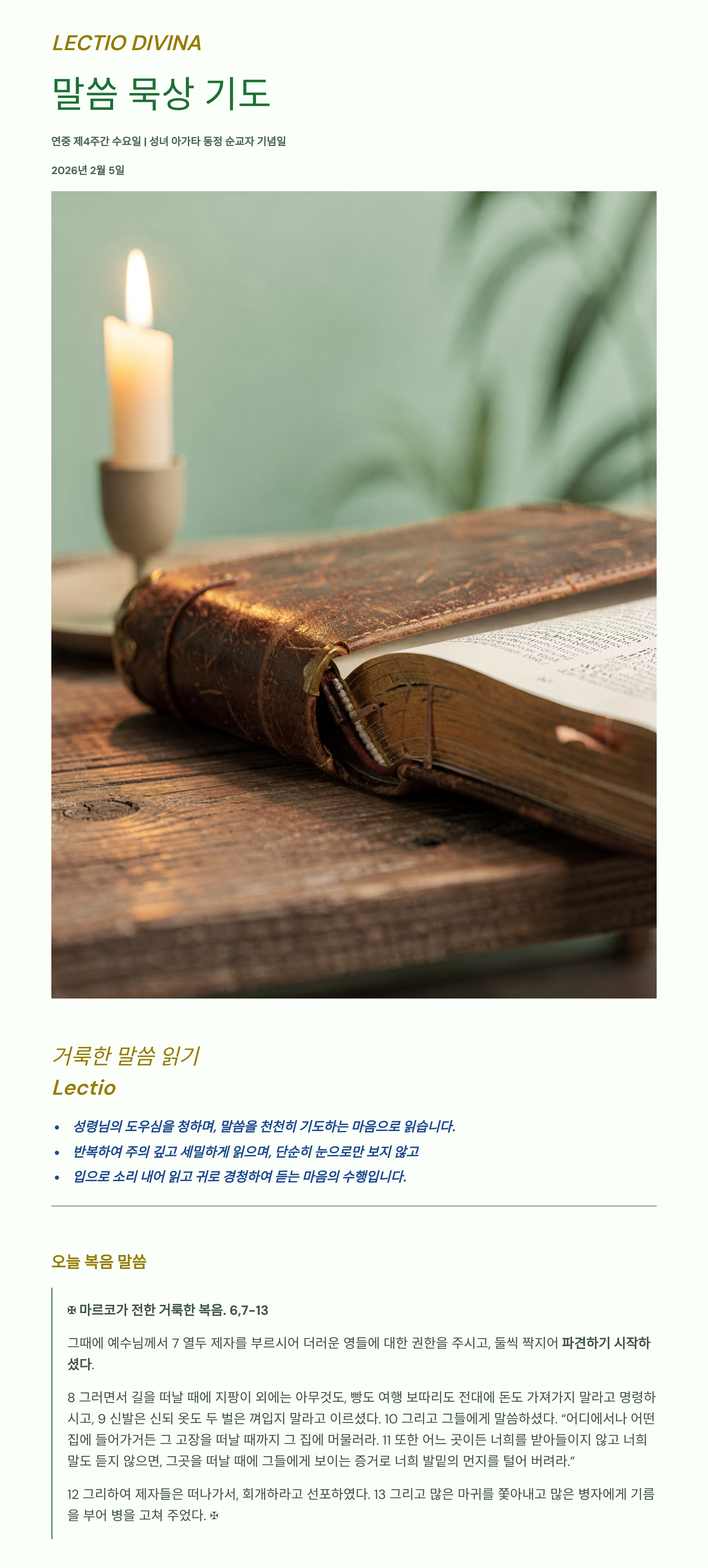 말씀묵상기도 LECTIO DIVINA 2026 02 05 연중 제4주간 목요일 | 성녀 아가타 동정 순교자 기념일