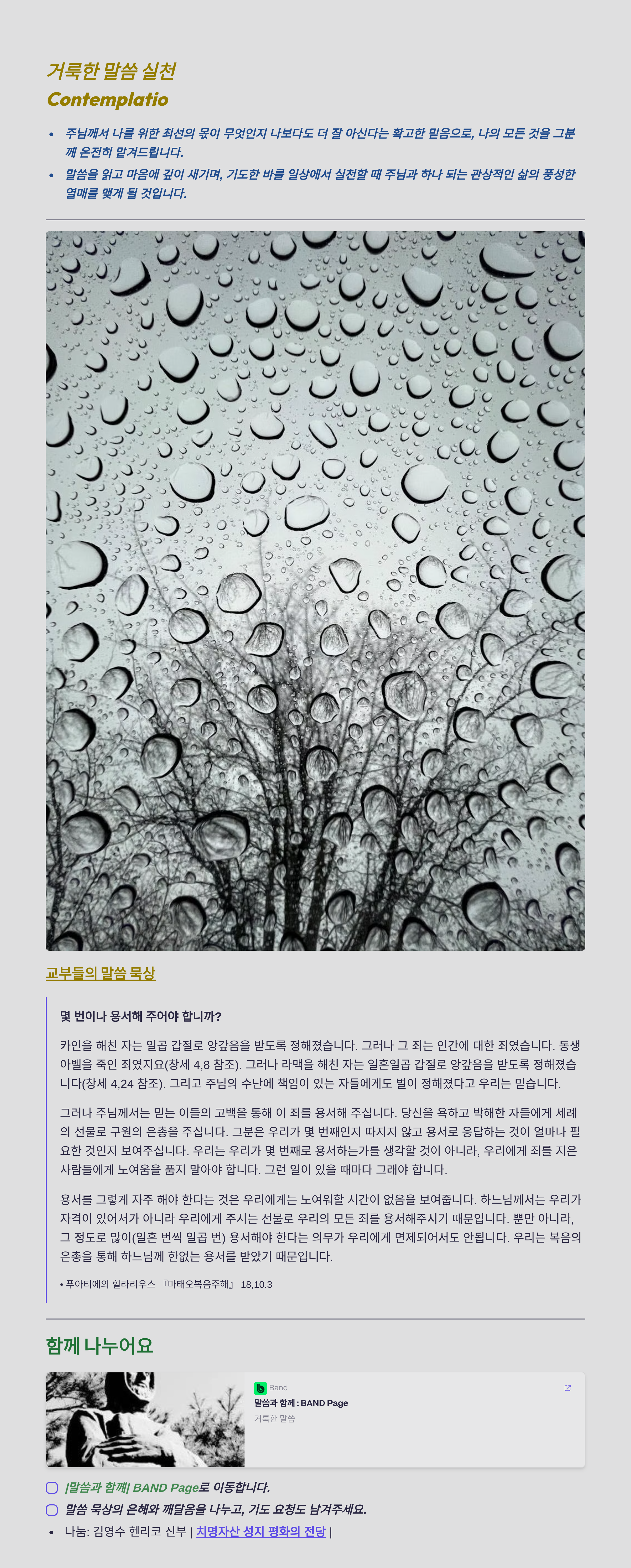 말씀묵상기도 LECTIO DIVINA 2026 03 10 사순 제3주간 화요일